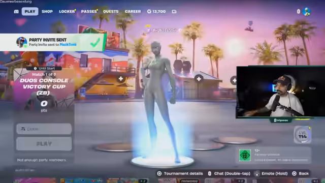 01:15:42Nach mehreren Runden Fortnite sind der Streamer und sein Team in einer guten Punktelage und haben die Möglichkeit, in den verbleibenden Runden eine hohe Punktzahl zu erzielen. Der Streamer kommentiert, dass Opens schwieriger als Finals sein können, da hier die Gegner unvorhersehbarer agieren. Nach dem geplanten Spiel folgt die FNCS Viewing Party und anschließend der geplante Stream mit Leon Zill.