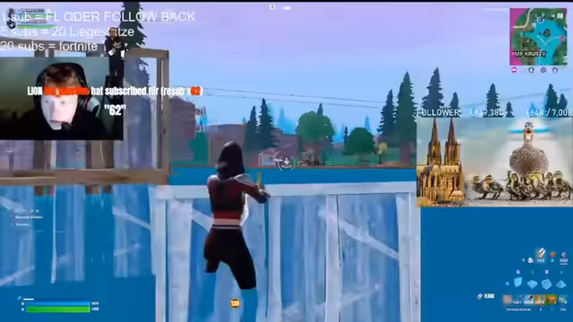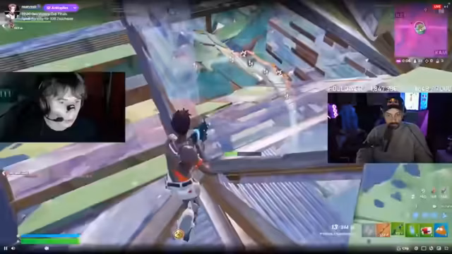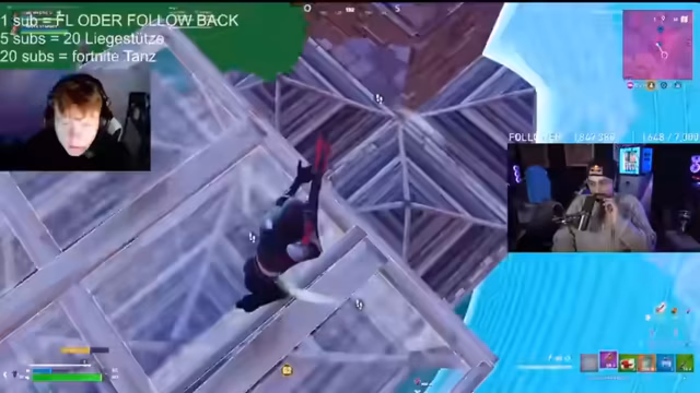 01:31:05Die Hälfte des Streams besteht aus Live-Simulationen von Fortnite-Spielen. Der Streamer und sein Partner ("Mate") spielen in verschiedenen Duos-Lobbys, kämpfen um Kills und eine Platzierung in der Rangliste. Es werden taktische Entscheidungen, Loot-Management und endgültige Kämpfe geschildert. Während der Gameplay-Pausen unterhält sich der Streamer mit dem Chat über die aktuelle Performance der Spieler, die gelesenen Kommentare und gibt Tipps. Zwischendurch werden auch persönliche Anekdoten, wie ein bevorstehender Golf-Plausch mit Riesen und Gripple, geteilt.