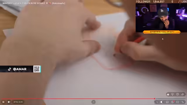 02:57:52Nach den Unterbrechungen beginnt das Video mit dem Waveboys-Schulsketch, in dem die Charaktere Lennart, Julian, Alex und andere vorgestellt werden. Der Sprecher kommentiert die Outfits und die schulische Situation, während die Zuschauer ermutigt werden, Likes und Abos zu setzen. Das Video wird als 30-minütige Unterhaltung beworben, die mit den Waveboys und dem gemeinsamen Content für die FNCS-Community verknüpft ist.