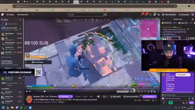 06:56:49In den späteren Runden von Fortnite wird das Gameplay mit Patrick analysiert, wobei die Herausforderungen von Team-Spielen in Solo-Modi hervorgehoben werden. Es wird über ungewöhnliche Taktiken gesprochen, wie das Camping in vollen Metallboxen oder das Kämpfen als Trio gegen Quartette. Der Streamer beobachtet und kritisiert das Verhalten von Gegnern, die oft im Lowground campen oder im Wasser versteckt sind. Während der Spielrunden werden Probleme mit Bugs, fehlendem Loot und Random-Events diskutiert. Die Interaktion mit Patrick bleibt lebhaft, mit humorvollen Kommentaren zu den Spielmechaniken und der Lobby-Qualität.