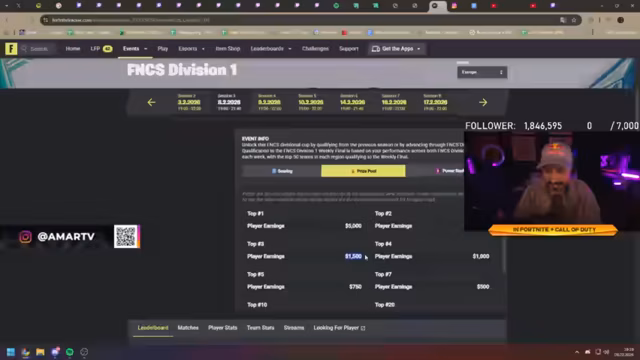 00:04:30Nach einem kurzen Intro mit YouTube-Videos leitet der Streamer offiziell zu den FNCS Division 1 Finals über. Es wird erklärt, dass heute das große Finale stattfindet, nachdem zwei Tage der Qualifikation vergangen sind. Das Format umfasst sechs Runden Duo-Action, bei der die besten Duos aus Europa gegeneinander antreten, um ein Preisgeld von 10.000 Euro für den ersten Platz zu gewinnen. Zudem wird erwähnt, dass auch die platzierten Teams bis hin zu den Top 40 Preisgeld erhalten und die Zuschauer aufgefordert, bei Twitch einzuschalten, um alle Teams zu sehen.