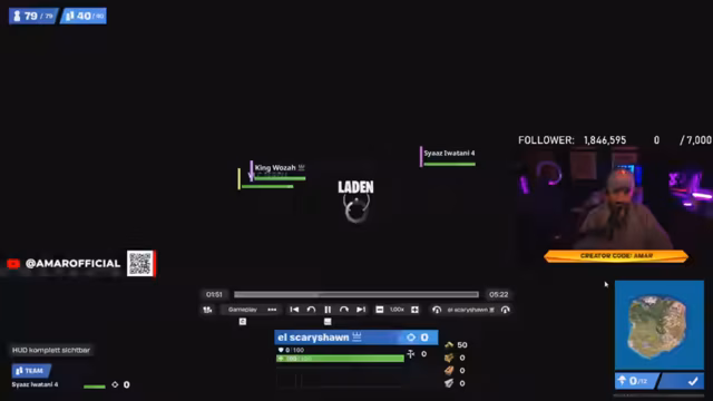01:16:52Das Gameplay von Buka wird diskutiert, als er von einem Gegner in der Box gefischt wird und revivt werden muss. Der Streamer lobt eine Map von Swayze und beschreibt, wie man sie strategisch lösen kann. Er berichtet, dass er aufgrund des Wegfalls seines Creator Codes auf bestimmte Items verzichten muss und daher viel Hunger habe, was seine Performance beeinflusst.