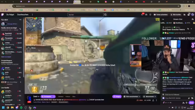 05:00:51Der Fokus wechselt zum Fortnite Squad Cup, wo ein Spieler über einen deutschen Hacker namens 'Reefs' spricht, der von ihm entlarvt wurde. Der Hacker änderte daraufhin seinen Namen und spielte Warzone Competitive, wurde aber erneut erkannt. Es wird die Frustration über Cheater ausgedrückt, die durch Namensänderungen und das Spielen auf verschiedenen Accounts versuchen, unentdeckt zu bleiben und damit Geld zu verdienen. Die Wirksamkeit von Anti-Cheat-Systemen wie Easy Anti-Cheat wird diskutiert, das in Spielen wie NBA und Battlefield erfolgreich eingesetzt wurde. Die Spieler kehren zum Black Ops 2 Match zurück, wo sie weiterhin um Spawns kämpfen und die Strategien des gegnerischen Teams analysieren, die als sehr effektiv beschrieben werden.