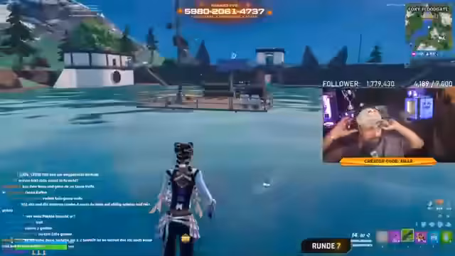 02:04:30Im Fokus des Streams steht das Gameplay in der Solo-Modus von Fortnite. Der Streamer analysiert den Endgame-Verlauf eines Mitspielers, der nach seiner Einschätzung sehr gute Placements erzielt. Er gibt taktische Ratschläge zur Rotation, zum Umgang mit der Sphäre und zur Ressourcenverwaltung, wie den Einsatz von Schildfischen und Splash. Es wird die Strategie des TP'n (Teleportieren) und das Nutzen von High Ground als defensiver Vorteil betont.