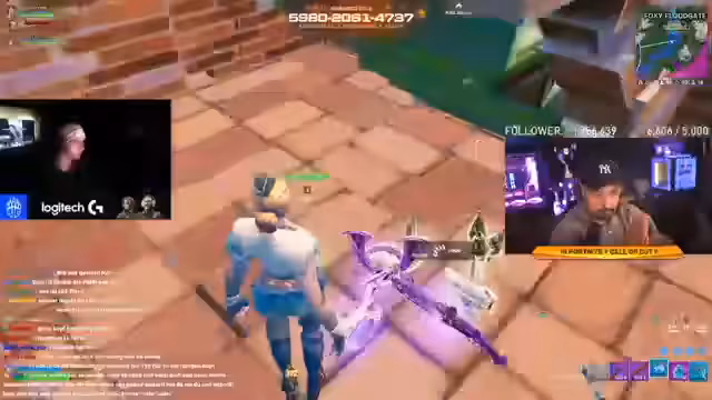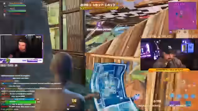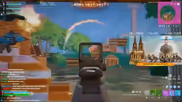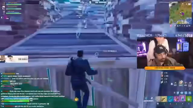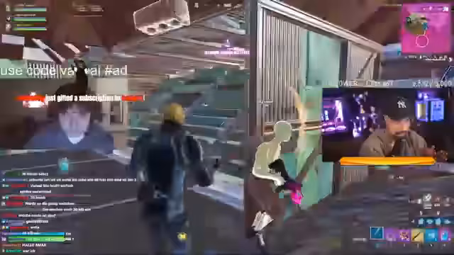01:39:35Die Anfangsphase des Streams zeigt ein intensives Game mit Kämpfen und Build-Verlusten. Ein Spieler hat keine Builds mehr und es gibt Verwirrung über das TP-Verhalten eines Gegners, der sich an Kony erinnert. Später folgt eine Runde mit einem riesigen unstackten Team und der Einsatz der Fernbedienungsschere. Das Team Vadial zeigt sich im Late-Game als sehr stark, holt das 'Baby' und fügt den Gegnern Schaden zu, während ein Spieler absichtlich in ein Trio läuft, was als strategischer Move gewertet wird.