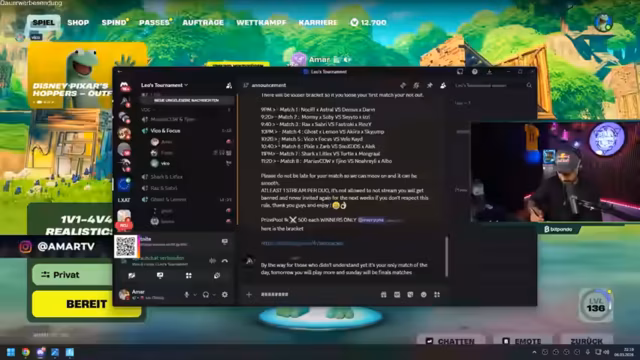00:10:53Neben der großen Ankündigung wird ein 1000-Dollar-2vs2-Turnier für denselben Tag erwähnt. Dieses Turnier, das von Leo the Crack veranstaltet wird, soll gemeinsam mit den Zuschauern als Viewingparty gefeiert werden. Es wird eine Watchparty im Discord geben, an der bekannte Tokenspieler wie Viko, Focus, Shark, Lidlex und Ghost teilnehmen. Der Streamer und das Publikum schauen sich gemeinsam an, welche Teams unter der Turnier-Anmeldung kommentiert haben.