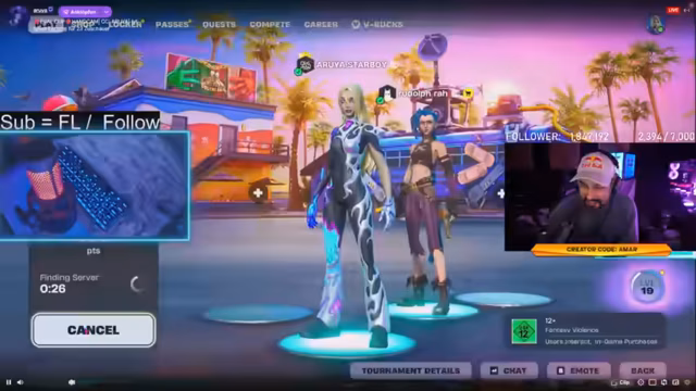 00:00:08Der Stream beginnt mit einer Begrüßung des Chats und der Feststellung, dass das erste Turnier aus Chapter 7 live gestartet wurde. Der Fokus liegt auf der Road to Unreal für das Winterroyale, für das sich der Streamer qualifizieren muss, indem er in den nächsten zwei Wochen den Unreal-Rank erreicht. Es wird eine Änderung im Competitive-Modus erwähnt: Spieler spawnen nun aus dem Battle Bus und nicht mehr aus der Welle, was im Chat diskutiert wird.