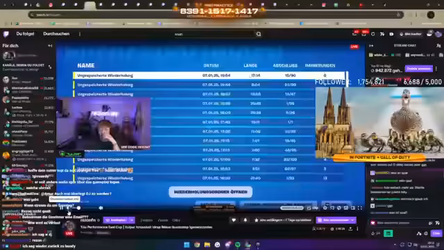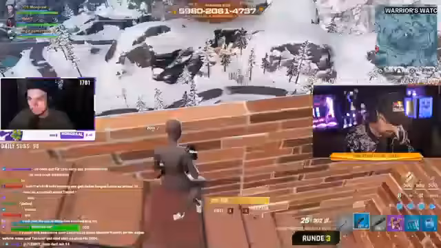 02:26:19Der Streamer schaut zusammen mit Kati die Galileo-Folge 'Reich mit Twitch - Von der Straße zum Streaming-Star', die 21 Minuten dauert und morgen im Fernsehen bei Galileo ausgestrahlt wird. Danach spielt er eine Runde Fortnite, wo er seinen ersten Rangtest in Platin 1 zeigt und zur Unterhaltung des Chats mit seinem Gameplay beeindruckt.
