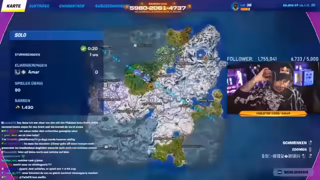 00:05:12Der Streamer begrüßt die Zuschauer zurück auf seinem Kanal und stellt die heutige Viewing-Party des Trio Performance Cups, auch bekannt als Cash Cup, vor. Bei diesem Turnier treten Spieler mit den meisten Serious Points aus den vergangenen Seasons in zwei Stunden im Open-Format an. Die Top 33 qualifizieren sich für das Finale, bei dem der Gewinner pro Runde 1200 Dollar Preisgeld erhält. Der Streamer erwähnt auch seinen Creator Code AMA und dass bei 50.000 Einträgen das nächste LAN-Event instant hosted wird.