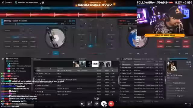 01:40:00Eine spontane DJ-Session mit Willi und Chad findet statt, während der Streamer über deren Fähigkeiten als DJs diskutiert. Obwohl es einige Kritik an den Übergängen zwischen den Songs gibt, wird die Musikauswahl allgemein positiv aufgenommen. Der Streamer erwägt, eine eigene DJ-Session mit seiner Freundin Kati zu machen, und diskutiert mögliche Formate wie eine Viewing-Party. Es zeigt sich die lockere und spontane Atmosphäre der Gruppe, während sie gemeinsam Musik machen und genießen.