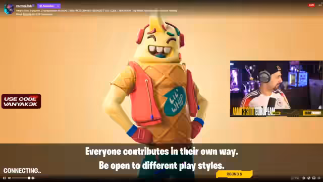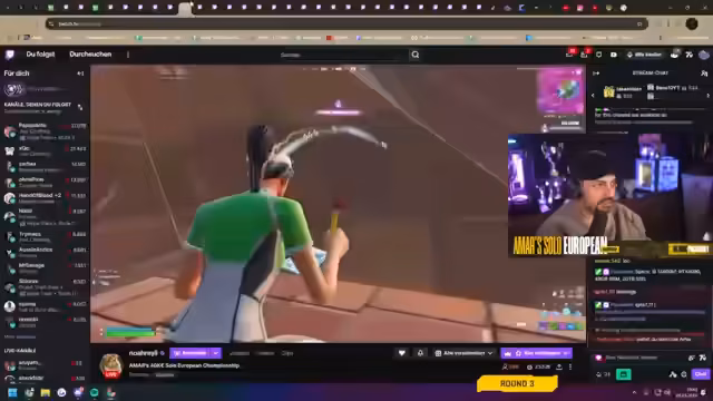 03:39:25Der Streamer kommentiert das späte Spielgeschehen in Tilted Towers. Er bemerkt, dass Hayden Pitching im Vorteil ist und ausrasten wird, wenn dieser gewinnt. Malibuka spielt immer noch GeoGuessr. Kovacs gewinnt die Special Round und damit 2.000 Euro. Ein Interview mit Kovacs wird geführt, der angibt, das Geld zu sparen oder in Krypto zu investieren. Er ist 19 Jahre alt, kommt aus Russland und spielt mit UPL und Savage im Trio. Er spielt Fortnite seit sechs Jahren und hat keine Freundin. Der Streamer kündigt an, dass der Gewinner der nächsten Runde zusätzlich 1.000 Euro erhält. Er holt Kovacs für ein weiteres Interview herein, der überrascht ist, nicht gecrasht zu sein. Er ist 19 Jahre alt und spielt Vollzeit Fortnite. Er hatte eine schlechte Saison und sucht ein neues Trio. Der Streamer wünscht ihm viel Glück für die kommende Saison. Es wird auf Thuy gewartet, der fehlt, und die Zuschauer werden aufgefordert, ihn im Chat zu beschuldigen. Die nächste Runde wird wieder in die normale Rangliste aufgenommen, und der Gewinner erhält zusätzlich 1.000 Euro. Der Streamer fragt nach Clips aus dem Turnier und bedankt sich bei Lady Nikki und Jackson für die Spende. Er erinnert die Zuschauer daran, den Creator Code Amar einzutragen.