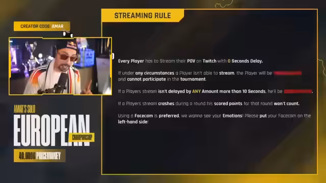 00:18:31Der Streamer eröffnet die "40.000€ AMAR EUROPEAN CHAMPIONSHIP 2 Days", ein Solo-Fortnite-Turnier mit einem Preisgeld von 40.000 Euro. Er stellt es als das größte und "stackteste" Turnier Europas vor und betont die hohe Qualität der Teilnehmer. Das Teilnehmerfeld umfasst die Creme de la Creme aus ganz Europa, darunter Profis aus Deutschland, Spanien, Italien, Dänemark, Schweden und sogar einen Spieler aus den USA. Der Streamer äußert seine Aufregung und stellt sicher, dass alle Teilnehmer die Regeln verstehen, insbesondere das Streaming mit Null Sekunden Verzögerung auf Twitch.