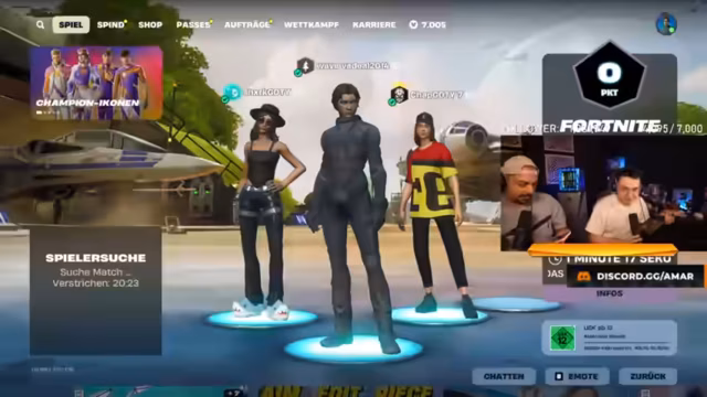 00:00:00Der Livestream beginnt mit der Ankündigung eines 'Performance Trios Cup Finals' auf dem Kanal 'amar'. Die Anfangsminuten sind geprägt von den Vorbereitungen auf das Spiel. Die Spieler diskutieren ihre Körpergrößen und den Spielspaß. Nach kurzen organisatorischen Auseinandersetzungen und einer kurzen Pause zur Beruhigung des Chats beginnt das eigentliche Gameplay, bei dem das Trio in das Spiel einsteigt und ihre erste Landung anvisiert.