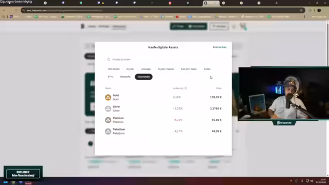 03:51:36Gold wird als die einzige Währung bezeichnet, die seit Jahrhunderten überlebt hat und daher als wertstabile Absicherung gilt. Besonders physisches Gold wird als Hedge gegen Börsencrashs empfohlen. Der主播 betont, dass Gold in jedem vernünftigen Portfolio eine Grundlage haben sollte, finanzielle Ratschläge werden jedoch stets ausgeschlossen. Die viermonatige Challenge wird bewusst risikoreicher gestaltet, um Chancen auf hohe Gewinne zu nutzen, was im Widerspruch zu einer klassisch, langfristigen und sicheren ETF-Strategie steht.