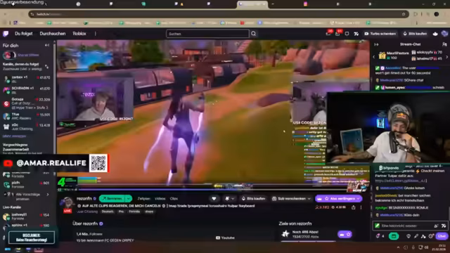 02:41:28Der Stream beginnt mit einer intensiven Fortnite-Partie, bei der ein Spieler namens Jappe in einem kritischen Kampf ums Überleben kämpft. Die Community verfolgt gespannt die Entwicklungen, besonders als Jappe bei nur noch 1 HP ist und versucht, dem finalen Sturm zu entkommen. Kommentatoren äußern sich enthusiastisch über die Spannung des Spiels und preisen die精湛en Aktionen des Spielers. Der Fokus liegt auf der dramatischen Jagd nach dem Sieg, wobei der Spieler letztendlich den Kampf gewinnt.