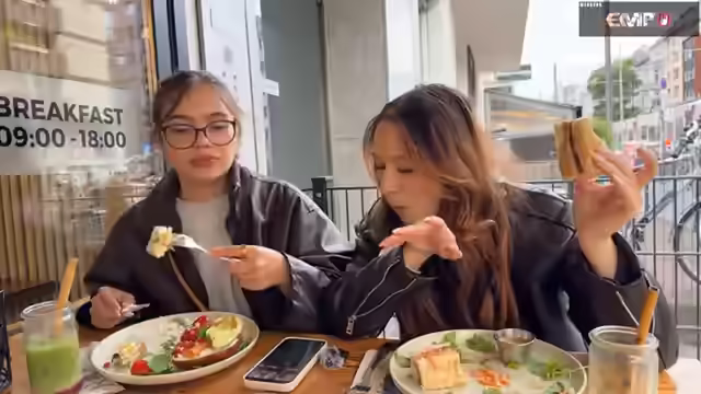 Verkostung eines teuren Toasts und Diskussion über Dating-Apps
