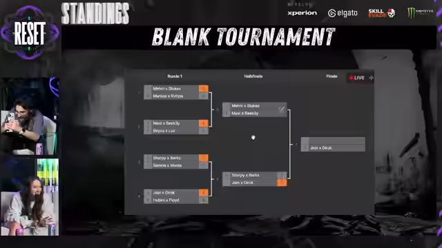 05:49:23Die Runden um den Verbleib im Turnier werden dramatisch. Für das Team Deki/Lipton bedeutet eine weitere Niederlage das definitive Aus. Gleichzeitig zeigen die Facecams der Spieler große Emotionen – von Konzentration bis zu purem Stress. Die Spannung ist am Höhepunkt, da die verbliebenen Teams um die letzten Plätze kämpfen.
