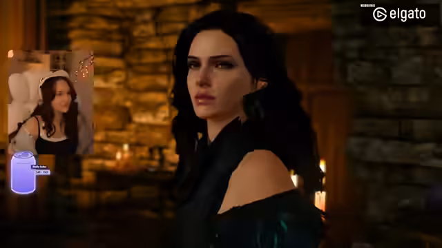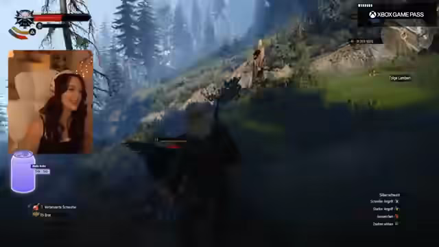 03:34:02Der Fokus liegt auf dem Gameplay von The Witcher 3. Die Streamerin hat das Ziel, den verschwundenen Hexer Eskel zu finden. Nach der Interaktion mit Yennefer sucht sie nach dessen Spuren, spricht mit Dorfbewohnern und ermittelt auf der Basis ihrer Hexersinne. Der Verlauf der Quest ist geprägt von Erkundungen, dem Einsammeln von Alchemiezutaten und dem Kampf gegen Monster, darunter ein fliegender Drache, den sie nur knapp besiegen kann.