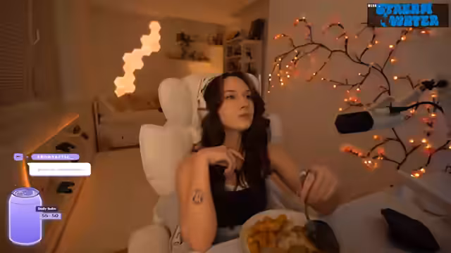 04:20:49Die Streamerin kehrt zu Yennefer in deren Turm zurück. Die Konfrontation ist angespannt, Yennefer wirkt frech und unberechenbar, und die Streamerin zweifelt an ihren Absichten. Trotz der unklaren Lage geht sie wieder nach unten. Anschließend deutet sie an, den Stream heute früher beenden zu wollen, da sie sehr müde ist. Sie spricht über ihre Schlafprobleme und ihre Bemühungen, diese zu改善, unter anderem durch den Einsatz eines Oura-Rings und pflanzliche Mittel wie Ashwagandha.