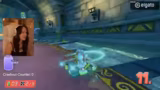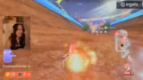 00:33:21Nachdem die technischen Hürden vorerst überwunden sind und das Essen im Ofen ist, beginnt das Mario Kart Turnier. Die Streamerin gibt zu, in dem Spiel sehr schlecht zu sein und sich hat überreden lassen, teilzunehmen. Nach der Eingabe des Turnier-Codes und einer Lobby-Phase, die von technischen Problemen und fehlerhaften Einstellungen geprägt ist, startet das Spiel auf hoher Schwierigkeitsstufe (100 CC). Sie ist von ihrer Leistung enttäuscht und findet die Steuerung rätselhaft.