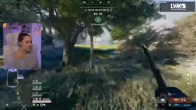 00:28:35Der Streamerinnen konzentrieren sich wieder auf das Spiel. Sie erleben eine turbulente Runde in Battlefield, die von vielen Kämpfen, Taktiken und einem unfairen Panzerangriff geprägt ist. Es kommt zu technischen Problemen, wie einem Bug beim Sabotieren des Panzers, und trotz intensiver Versuche scheitert das Team schließlich an einem gegnerischen Sniper und Panzer.