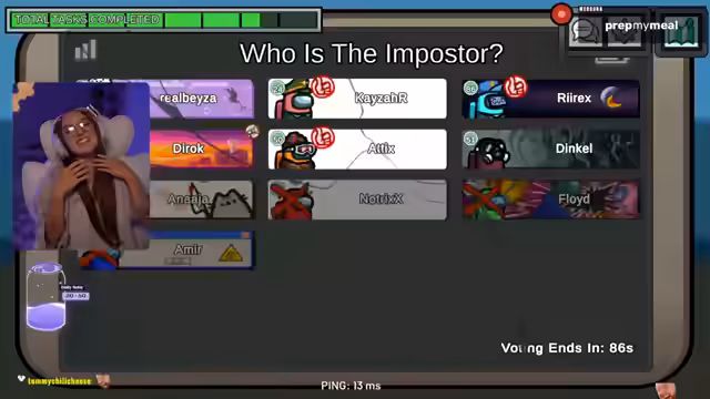 00:23:50Die Streamerin wechselt das Thema und startet eine Runde des Spiels Among Us. Zu Beginn sind nur wenige Spieler anwesend, da einige kurzfristig abgesagt haben. Ihr Fokus liegt auf der Rolle des 'Trackers'. In der ersten Runde analysiert sie die Bewegungen und Aussagen der Spieler und stellt Theorien über die Identität des Impostors auf. Dabei versucht sie, das Verhalten von 'Matze' zu analysieren, der verdächtige Alibis hat, was zu einem intensiven Spiel führt und letztlich zu seiner Enttarnung führt.