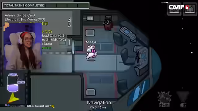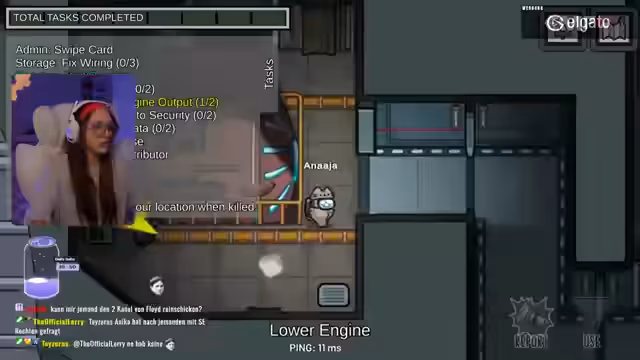 00:56:07Im weiteren Verlauf des Spiels identifizieren die Spieler 'Laura' als Impostor und eliminieren sie. Der genannte 'Matze' hat sich zuvor selbst als Crewmate getarnt, wird jedoch enttarnt. Die Streamerin beschreibt seine Reaktion als typisch für 'Impostors': sobald sie entlarvt werden, schalten sie sich stumm und entziehen sich dem Dialog. Dieser sogenannte 'Crashout' wird als Standardverhalten beschrieben, das sie selbst nur beobachtet, wenn sie in der Rolle des Impostors ist.