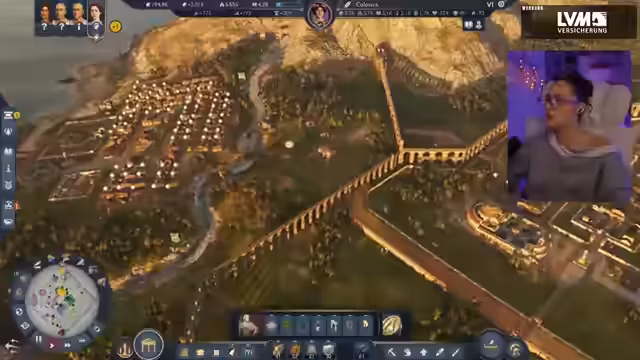 00:43:03Die interaktive Runde endet, und der Streamer kehrt zu seinem eigentlichen Hauptinhalt zurück: dem Gameplay von 'Anno 1777: Pax Romana'. Er zeigt seiner Community den Fortschritt seiner römischen Siedlung, die er in einem freien Spiel modus aufgebaut hat. Der Fokus liegt auf der Optimierung der Infrastruktur, insbesondere der von Aquädukten und Zisternen, die die Produktivität der umliegenden Felder erheblich steigern. Es geht darum, das Stadtbild zu verschönern, eine funktionale Versorgung der Bevölkerung sicherzustellen und gleichzeitig die Effizienz der Produktion durch strategische Platzierung von Gebäuden wie Kornmühlen und Garküchen zu maximieren. Der Streamer plant den Bau eines Bauernhofs und arbeitet an der Gestaltung eines zentralen Marktplatzes für seine Einwohner.