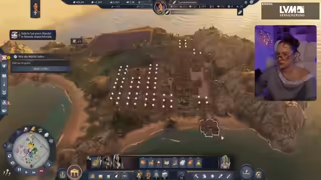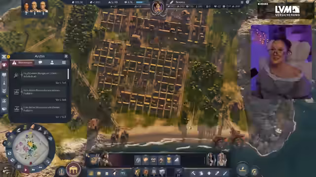 03:11:13Neben dem inneren Inselbau muss die Streamerin auch die Beziehungen zu anderen Herrschern managen. Sie erhält eine Anfrage des Kaisers, die einen Ruf von 82 Tonnen erfordert, den sie jedoch erst mühsam zusammenstellen muss. Sie muss ein Schiff losschicken, um die geforderte Ware zu liefern, während gleichzeitig ihr Ruf durch das Ereignis 'Zwangsarbeit in den Minen' gefährdet wird. Dies zwingt sie, strategische Entscheidungen zu treffen, um ihren Ruf zu sichern und nicht in einen Konflikt gestürzt zu werden. Währenddessen läuft auf der Insel weiter das übliche Tagesgeschäft, wie Brände und die Organisation von Festen, um die Bevölkerung zufrieden zu stellen.