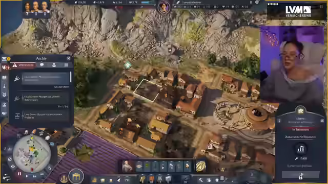 01:44:17Beim Bau der Stadt stößt die Streamerin immer wieder auf Herausforderungen, insbesondere bei der Platzierung von Gebäuden und Straßen, die nicht immer den gewünschten ästhetischen oder funktionalen Anforderungen entsprechen. Es wird festgestellt, dass die Spielmechanik manchmal zu ungeraden oder schiefen Anordnungen führt, was die Planung erschwert. Ein Zuschauer fragt nach Tipps zur Rückführung von Truppen vom Schiff, woraufhin die Streamerin erklärt, dass dies über das Kontor und das Warentransfermenü möglich sein sollte. Diese Interaktion unterstreicht die Komplexität des Spiels und die Notwendigkeit, sich mit den verschiedenen Mechaniken vertraut zu machen. Die Streamerin betont, dass sie ihre Stadt nach eigenem Ermessen und ohne vorgefertigte Layouts baut, was die Gestaltung zu einem kreativen, aber auch anspruchsvollen Prozess macht.