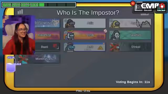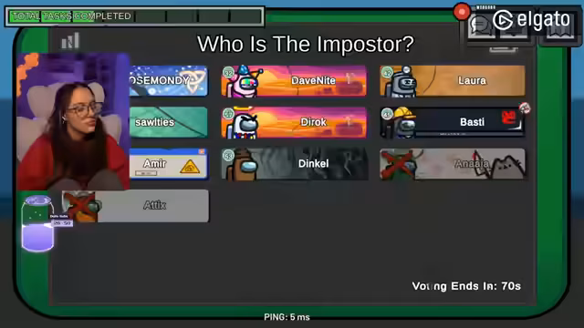 01:55:11Die Aufregung erreicht einen Höhepunkt, als jemand im Spiel einen Shapeshift-Vorgang beobachtet. Ein Spieler beschreibt, wie er einer Person nachlief und plötzlich ein Ei in einer bestimmten Farbe sah, was auf den Imposter hindeutet. Dies führt zu einer hektischen Phase der Aufklärung. Dave Knight wird als der wahre Imposter identifiziert, nachdem mehrere Falschbeschuldigungen im Raum stehen. Anaaja und ihre Mitspieler diskutieren über die genauen Umstände des Mordes und überlegen, wie sie Dave im nächsten Zug stoppen können.