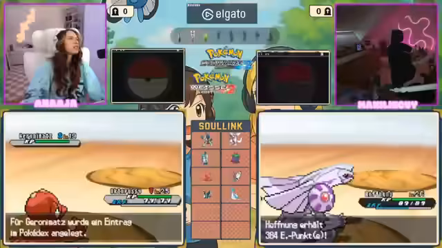 00:40:02Nach diversen technischen Pannen und der Lösung eines Discord-Verbindungsproblems kann schließlich das eigentliche Pokémon-Spiel mit Maxi beginnen. Sie befinden sich in einem speziellen Raum, der neue Pokémon-Encounters verspricht, stoßen aber auf Verwirrung bezüglich des weiteren Vorgehens. Die Stimmung ist von der Freude am Entdecken geprägt, auch wenn die Orientierung in der Spielwelt und das Management der Pokémon-Teams eine Herausforderung darstellen.