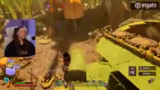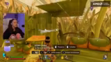 01:02:30Nachdem Maxi für das gemeinsame Gameplay eingetroffen ist, wird das Spiel Grounded gestartet. Beide sind begeistert von den Verbesserungen im Vergleich zum ersten Teil und beginnen sofort im Kreativmodus zu bauen. Sie stoßen auf erste Herausforderungen, wie ein buggy Bausystem und das Fehlen von Ressourcen wie verdorbenem Fleisch. Während des Spieles wird weiterhin mit dem Chat gequatscht und aufmerksam auf die Geräuschkulisse im Spiel geachtet, um Larven und andere Insekten zu identifizieren. Der Stream verlagert sich komplett in das gemeinsame Gameplay-Erlebnis.