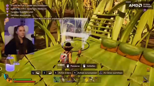07:23:19Die Streamerin plant, ihre Basis in Grounded weiter auszubauen. Sie unternimmt Versuche, eine Küche und einen Schlafbereich einzurichten, wobei sie über verschiedene Baumethoden wie Dreieckswände, Überdachungen und Geländer nachdenkt. Der Fokus liegt darauf, eine halb offene, aber geschützte Struktur zu schaffen, die wie ein Baumhaus aussieht, wobei die Platzierung und das Aussehen der einzelnen Elemente diskutiert und mehrmals angepasst werden.
