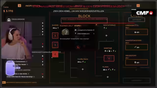 03:49:51Neben der Untersuchung der Überlebenden muss der Streamer auch die Basis verwalten. Er muss sicherstellen, dass genug Lebensmittel und Strom vorhanden sind, und hat Schwierigkeiten bei der Orientierung und der Zuweisung der Ressourcen. Das Management der Ressourcen und der Ausbau der Basis werden zu einer zähen Herausforderung.