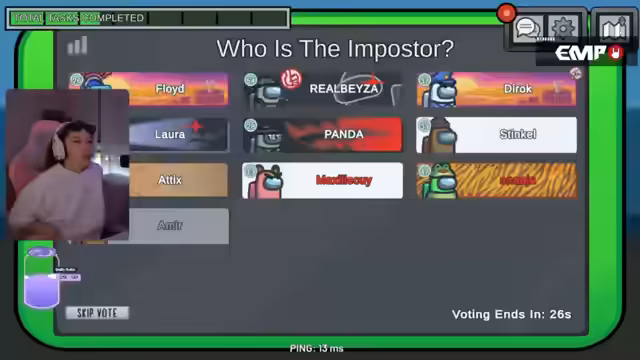 01:15:31Die Runde wird von taktischem Vorgehen und gegenseitigem Misstrauen geprägt. Maxi versucht, sich ein Alibi zu verschaffen, indem sie nach der Tötung Laura eine Weile wartet, bevor sie sich bewegt. Gleichzeitig gibt es Vorwürfe gegen Armee, der als "World's Worst Impostor" bezeichnet wird, da er laut Chat offensichtliche Fehler macht und verdächtigt wird, trotz seiner Anwesenheit nicht gehandelt zu haben. Die Spieler müssen nun entscheiden, wem sie noch trauen können.