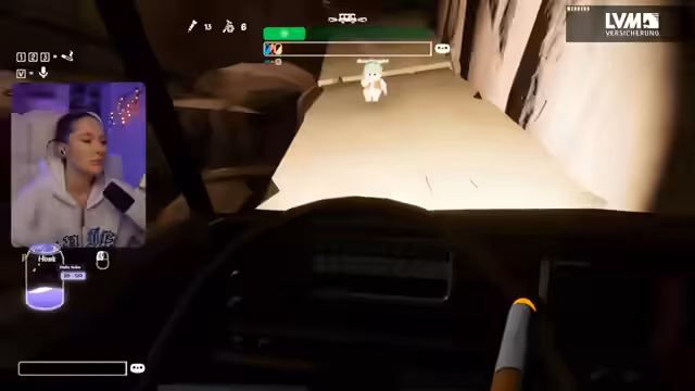 00:31:20Nach einer kurzen Einschwörung, bei der betont wird, dass das Team zusammenhalten und nicht streiten wird, beginnt die Fahrt. Die Streamerin fährt und das Team spielt quasi gegen den Chat, der sie scheitern sehen will. Es kommt zu ersten Schwierigkeiten, als ein Bär auftaucht und die Streamerin fragt, ob jemand ihn ablenken kann. Sie findet Schrott, der für das Spiel essentiell sein wird. Es wird über Checkpoints und Updates im Spiel diskutiert, und die Streamerin ist sich unsicher, ob das Spiel gespeichert hat. Es kommt zu kleineren Unfällen und Stürzen, und die Teammitglieder stoßen sich gegenseitig an. Die Streamerin versucht, das Auto zu reparieren und die Fahrt fortzusetzen, während die anderen Teammitglieder sie unterstützen. Es wird humorvoll über vergangene Fahrfehler und Führerscheinprobleme gesprochen, wobei die Streamerin ihre Verantwortung betont und erklärt, dass sie wieder im grünen Bereich ist.