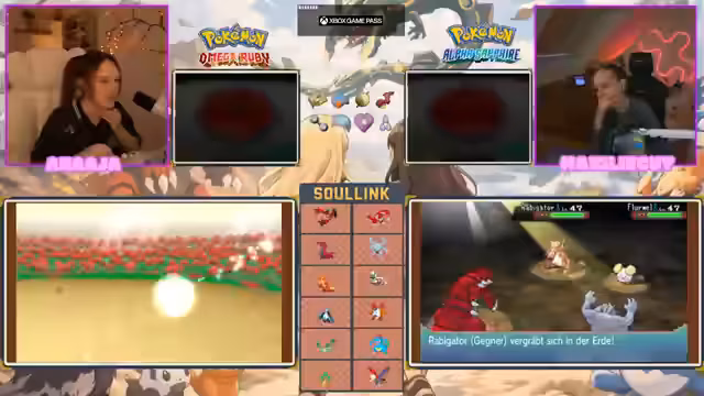 Es wurde ein gemeinsamer Versuch der NUZLOCKE-Challenge in Pokemon Omega Rubin unternommen. Nach dem Aufbau eines funktionierenden Teams durch Navigieren in komplexen Umgebungen und Durchstehen von Kämpfen, gelang der Einzug in die Top 4 der Pokemon-Liga.