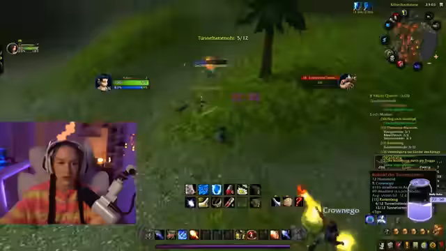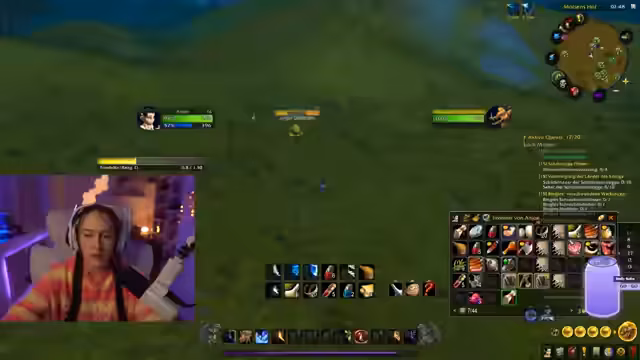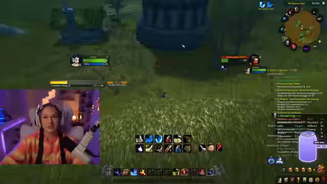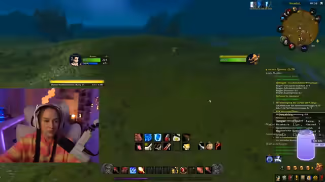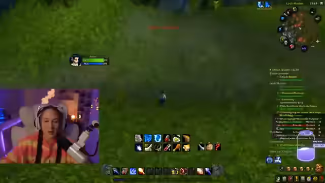 06:17:40Nach einer kurzen Pause kehrt die Streamerin zurück zu ihrem WoW-Charakter und hat das Ziel, eine verpasste Prinzessinnen-Quest abzuschließen. Die Unterhaltung ist geprägt von Missverständnissen und unkoordinierten Aktionen im Spiel, was zu mehreren Toden und Frustration führt. Die Route wird mehrmals angepasst, um gefährliche Gebiete mit übermächtigen Gegnern zu vermeiden und den Fokus auf die Questabgabe zu legen.