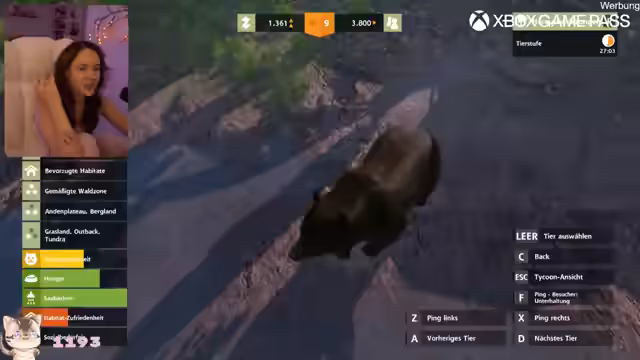 01:52:57Beim Spielen von Zoo Tycoon kämpft die Streamerin mit technischen Schwierigkeiten wie einem zitternden Bild, was die Spielerfahrung beeinträchtigt. Trotzdem beginnt sie, einen Zoo zu gestalten, indem sie Wege, Gehege und Tiere errichtet. Eine besondere Freude bereitet ihr es, alle Tiere nach den Namen aus dem Chat zu benennen, um so die Community direkt am Spiel teilhaben zu lassen. Während des Spielverlaufs werden wiederholt Spender und Follower erwähnt.