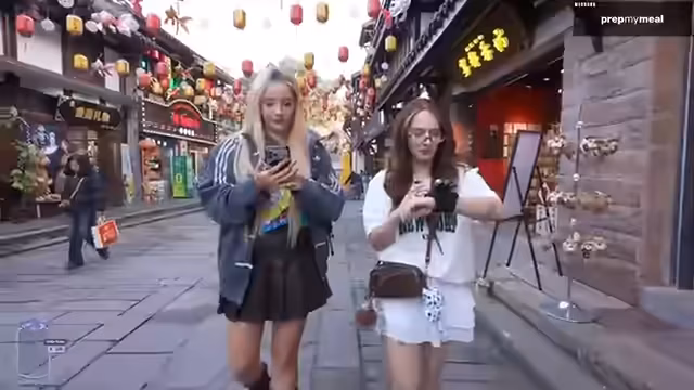 00:26:09Die Streamerinnen setzen ihre kulinarische Entdeckungsreise fort und probieren verschiedene Süßigkeiten und Snacks. Sie kosten Reiskuchen, der von der Konsistenz her an Kaugummi oder Marshmallows erinnert, aber weniger süß ist und Mandeln enthält. Auch warme, süße Nüsse werden probiert, die geschmacklich an das Aroma chinesischer Städte erinnern. Die Streamerinnen sind von der Schönheit der Altstadt begeistert und machen zahlreiche Fotos, insbesondere von den Gebäuden und der untergehenden Sonne. Es wird erwähnt, dass die Streamerin ihre Winterjacke vergessen hat, während alle anderen Touristen warm angezogen sind. Sie besuchen einen Laden mit Perlen und Muscheln, wobei die Frage aufkommt, ob die Muscheln noch leben. Ein gefährlicher Laden mit Geschirr wird gemieden, da die Streamerin eine Schwäche dafür hat. Die Idee, sich die Ohren ausschmalzen zu lassen, wird diskutiert, ebenso wie eine Fußmassage. Die Streamerinnen sind beeindruckt von den Wunschschildern, die Menschen mit ihren Wünschen an Bäume gehängt haben.