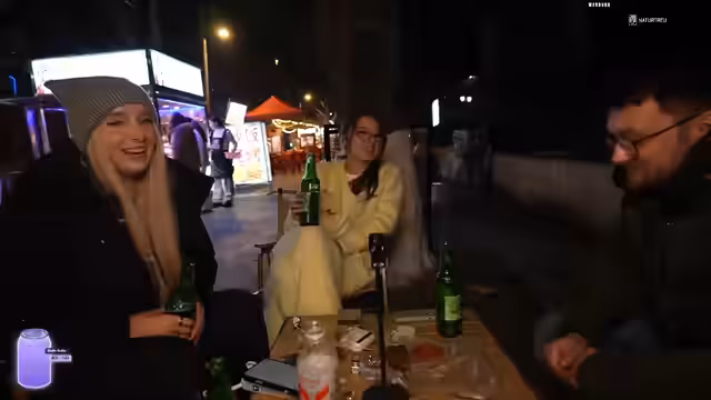 05:16:44Janik hat zwei Biere bereitgestellt, und die Streamerinnen genießen die chillige Atmosphäre am Nachtmarkt. Es wird über das Essen gesprochen, insbesondere über Bratoppen, und die Streamerin äußert ihren erneuten Hunger. Sie überlegt, sich etwas zu essen zu holen und scherzt, dass in diesem Stream nur gegessen wird. Die Streamerinnen diskutieren die Möglichkeit, heute am Nachtmarkt zu bleiben und morgen früh einen langen Stream zu machen, um die 9th Street zu besuchen. Es wird über die Zeitverschiebung gesprochen und wie sie ihre Stream-Zeiten an die Zuschauer anpassen müssen. Die Streamerin erwähnt, dass sie keine Powerbank ausleihen konnte, obwohl sie es an mehreren Stationen versucht hat. Sie spricht über ihr neues Reel auf TikTok und fragt die Zuschauer, ob sie es schon geliked haben. Die Diskussion wechselt zu Geburtstagen im Dezember und Adventskalendern. Sie erwähnt, dass ihr eigener Geburtstag im Juni ist und sie als Kind Mitleid mit Freunden hatte, die um Weihnachten herum Geburtstag hatten.