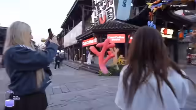 01:15:44Die Altstadt bietet eine Fülle an kulturellen Eindrücken. Von einem riesigen Goldfisch über dem Kopf bis hin zu spaßigen Getränken und einem Autoscooter in einem Gebäude, gibt es viel zu entdecken. Die Streamerinnen äußern den Wunsch, noch einen Bubble Tea zu probieren. Die Architektur der Altstadt wird als sehr schön und gepflegt beschrieben, mit beweglichen Schmetterlingen und Hotels, die als „crazy cool“ und preislich sehr günstig empfunden werden. Eine besonders schöne Lampe wird entdeckt, die jedoch nicht transportiert werden kann. Das Geschirr mit Blumenmotiven wird ebenfalls bewundert. Die Badezimmer der Hotels werden als „10 von 10“ gelobt. Ein traditionelles Bambusgerüst wird erklärt, dessen Vorteile in der Leichtigkeit und Stärke liegen, aber auch der Nachteil der Brennbarkeit. Die ruhige Atmosphäre und die vielen Fotospots werden geschätzt. Die Begegnung mit einer kleinen Katze löst große Begeisterung aus und der Wunsch, sie mit nach Hause zu nehmen, wird geäußert. Die Katze wird als sehr fein und süß beschrieben, was zu einer längeren Interaktion führt.