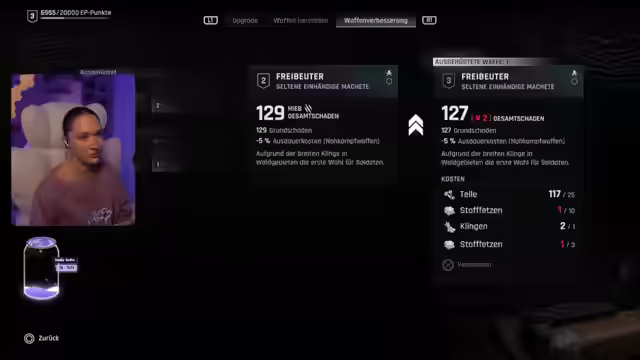 03:18:11Der Stream beginnt mit einer Diskussion über TikTok und den Umgang der Plattform mit bestimmten Accounts, insbesondere den von Serena, deren Account mit 55.000 Followern gesperrt wurde. Es wird die Frage aufgeworfen, ob TikTok-Profile anzeigen, wer sie besucht hat, was zu Spekulationen über Stalking führt. Anschließend erfolgt ein kurzer Waffen-Check im Spiel. Einige Waffen werden aussortiert, andere behalten, wobei die Entscheidung auf Basis von Werten und Geschwindigkeit getroffen wird. Es wird festgestellt, dass Waffen nicht mehr verbessert, sondern nur noch modifiziert werden können. Die Streamerin äußert ihren Unmut darüber, dass sie die Musik im Spiel vermisst und dass sie eigentlich geplant hatte, die Inhalte zu zerlegen.