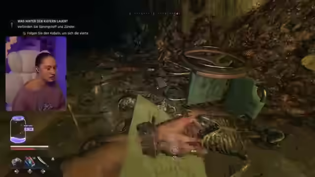 05:03:07Die Streamerin navigiert durch ein verwirrendes Areal, wobei sie Kabeln folgt und Springladungen sucht. Es gibt Orientierungsprobleme und die Frage, ob ein bestimmter Sprung tödlich ist. Die Dunkelheit und die schlafenden Gegner tragen zur Anspannung bei. Es wird kurz ein Loot untersucht und ein Hinweis auf 'Forrest 2' gefunden, was als 'sehr kranke Scheiße' bezeichnet wird. Die Questnavigation ist unklar, manchmal wird der Weg angezeigt, manchmal nicht, was zu Verwirrung führt. Es wird der Wunsch geäußert, diese 'Höllenhöhle' zu verlassen. Nach einem Gespräch mit William wird die Möglichkeit erwähnt, etwas in die Luft zu jagen, und es wird ein Vergleich mit Parcours-Elementen aus Dying Light 1 gezogen. Die Streamerin äußert den Verdacht, dass Quests unterschiedliche Ausgänge haben könnten, und bedauert den Tod einer Spielfigur, was zu Fragen nach den Konsequenzen der eigenen Entscheidungen führt. Ein erhaltenes Messer wird als nicht besonders nützlich eingestuft.
