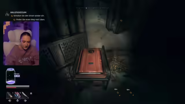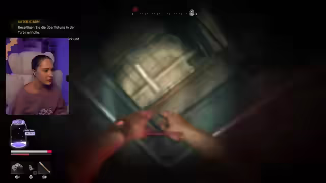 06:14:21Die Streamerin springt in einen mit Wasser gefüllten Bereich und stellt fest, dass die Luft schnell zur Neige geht. Sie muss ein Rohr abdichten, um zu überleben, und versucht, die Ventile der grünen Leitungen zu schließen. Die Waffe ist kaputt, und es wird festgestellt, dass manche Sachen nur begrenzt repariert werden können. In einem riskanten Manöver schafft es die Streamerin, Luft zu holen und die Ventile zu schließen. Sie kehrt nach oben zurück und muss Largo kontaktieren, um den überfluteten Bereich trocken zu legen. Es wird nach Pumpen gesucht, um das Wasser abzupumpen. Nach weiterer Suche wird ein Schalter gefunden, der die Pumpen aktiviert. Da die Hauptsysteme keinen Strom haben, muss dieser wiederhergestellt werden. Ein Messer wird verschwendet, und es wird festgestellt, dass es sich um ein Wurfmesser handelt. Das Notstromaggregat muss aktiviert werden, um die Pumpen mit Strom zu versorgen. Ein verschiebbares Objekt wird entdeckt, das den Weg freigibt.