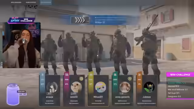 01:14:41Es wird eine Win-Challenge veranstaltet, bei der innerhalb von zwölf Stunden eine bestimmte Anzahl von Siegen in verschiedenen Spielen erreicht werden muss. Die Anzahl der benötigten Siege wurde zuvor ausgewürfelt. Im Stream wird über einen CS-Skin diskutiert, dessen Wert auf bis zu 450.000 Euro geschätzt wird, was allgemeines Erstaunen hervorruft. Es wird darüber philosophiert, was man mit so viel Geld anstellen könnte, anstatt es für einen virtuellen Gegenstand auszugeben. Während des Spiels gibt es Team-Damage, was zu einer Warnung führt, da weiterer Team-Damage zu einer Sperre führen könnte. Die Spielerinnen einigen sich darauf, vorsichtiger zu sein, um dies zu vermeiden. Es wird überlegt, ob jemand im Chat einen sehr teuren Skin besitzt, den er der Gruppe zur Verfügung stellen könnte.