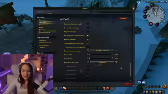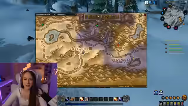 01:12:55Der Streamer konfiguriert die Benutzeroberfläche mit dem Dragonflight UI und Bartender für Action Bars. Es gibt Verwirrung bei der Anpassung von Elementen wie der XP-Leiste und dem Schadensmeter (Details). Probleme mit der Maus führen zu Diskussionen über Addon-Einstellungen. Die Kamera wird für Ingame- und Vollbild-Perspektiven eingerichtet, wobei Leatrix Maps für Kartenrand-Entfernung und automatische Zonenwechsel erwähnt wird. Die Einrichtung gestaltet sich komplex, besonders bei der Skalierung von Buttons und der Platzierung von Balken.