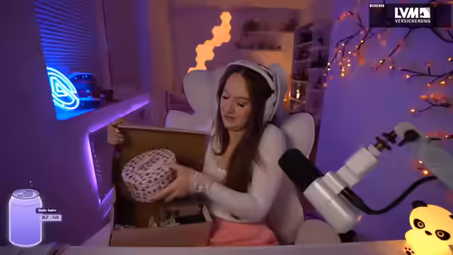 00:25:49Nach Fragen der Zuschauer zu den Feiertagen präsentiert der Streamer seine Weihnachtsgeschenke. Dazu gehören ein hochwertiges Bügeleisen von seiner Oma (mit der Begründung, dass sie bei Besuchen bügeln möchte), ein Katzenbuch als Riesenband, Hello-Kitty-Geschenke wie bedrucktes Toilettenpapier (ein Insider-Witz mit seinem Stiefvater) und ein Taylor-Swift-Zitat auf einer Notiz. Er zeigt auch persönliche Fotos, darunter ein Bild seiner Katze Bob und humorvolle Bilder aus vergangenen Stream-Momenten. Die Geschenke beschreibt er als verrückt und emotional wertvoll, besonders die Verbindung zu Familientraditionen.