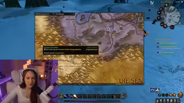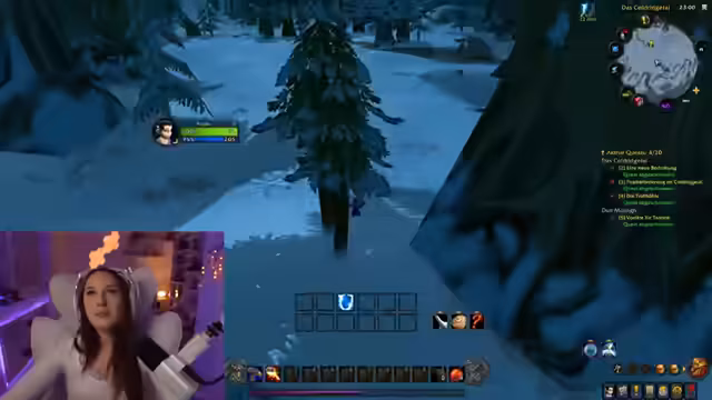 02:40:11Während des Questings in Winterquell (Zone) wird ein Waffen-Weihnachtsereignis thematisiert, bei dem Spieler durch Küssen von NPCs Gegenstände sammeln können. Der Streamer und sein Guest-Speaker diskutieren die Event-Dauer und die Mechaniken. Es folgen praktische Tipps zum Questing in der als kalt und nass beschriebenen Zone, wobei Allianz-Quests als weniger angenehm im Vergleich zu Horde-Quests eingestuft werden.